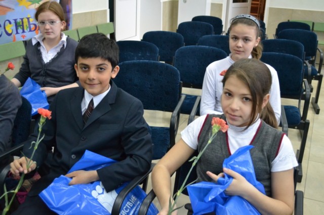 | Чествование ветеранов в актовом зале гимназии: со словами приветсвия и благодарности к ветеранам обратились директор гимназии М.Н. Ковалева (фото 3), председатель ТОС им. Зорге С.С. Аксененко (фото 5), депутат Городского совета депутатов В.В. Алексеев (фото 8), а гимназисты вручили ветеранам цветы и подарки |